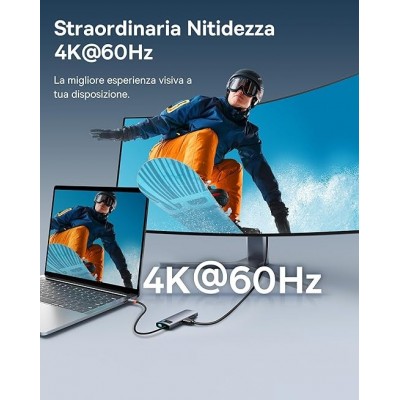 • 【Ultra nitido 4K@60Hz】La porta HDMI supporta una nitidezza massima di 4K@60Hz per la trasmissione su schermo con modalità estensione e specchio, ed è compatibile con 1080P@120Hz per un'elevata frequenza di refresh, per un'esperienza visiva senza precedenti