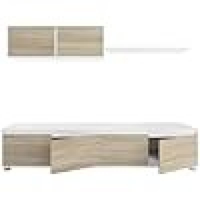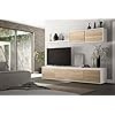 • Savannah Fited Wall: Nội thất phòng khách Porta, Phòng khách bố cục, Phòng khách đơn vị treo tường, 200x41h43 cm, Màu trắng và gỗ sồi