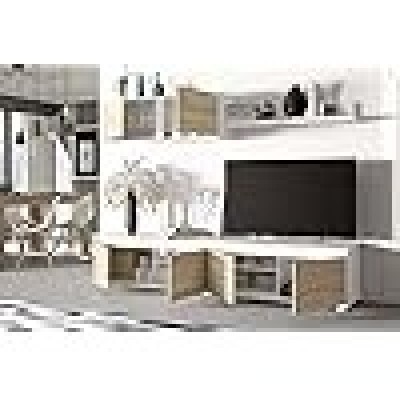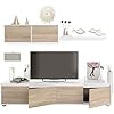 • STRUTTURA E UTILIZZO - Mobile TV per salotto composto da una base porta televisione a quattro antine battenti, un pensile sospeso e mensola, internamente ripiani fissi - La scelta dei vari mobili che compongono questo set da salotto rendono il design di questo articolo d'arredamento moderno, funzionale e salvaspazio - Oltre al posizionamento della TV potrete personalizzare la parete con i vostri soprammobili preferiti che rimarranno in esposizione sugli scaffali - Lo spazio all'interno delle ante è perfetto per riporre in modo ordinato i vostri libri, documenti, oggetti decorativi o stoviglie - Set soggiorno perfetto per arredare un salotto, sala da pranzo oppure una stanza open space