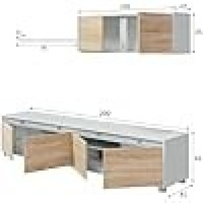 • Kích thước CM - Cửa TV: Dài: 200 Chiều rộng: 41 Cao: 43 - Kệ treo tường: 105x29h35 - Kệ: 95x21h3