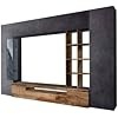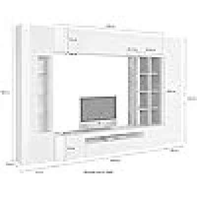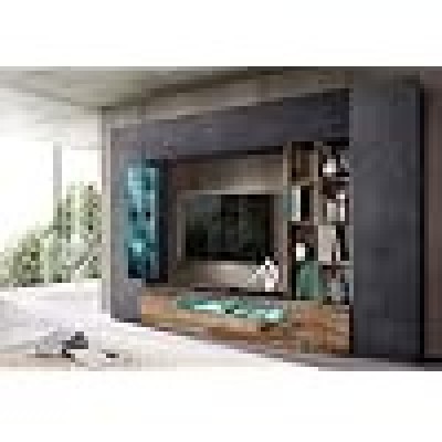 página de título > Đồ gia dụng và nhà bếp > Bức tường dmora được trang bị phòng khách, sản xuất tại Ý, với đèn xanh, đế và tivi