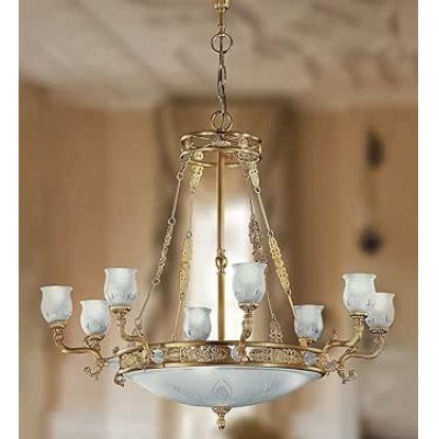 Đèn 8+4 cổ điển bằng đồng thau vàng cổ với loa thủy tinh sa tanh khắc PR 6566/8