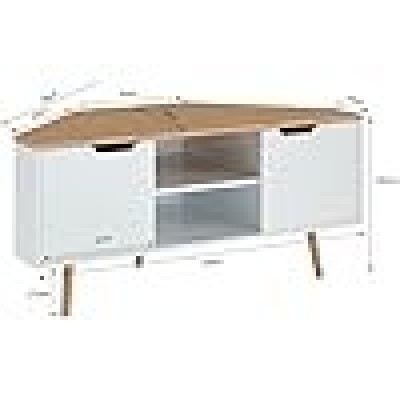Foluban - Chân đế tivi cao tới 165 cm, bằng gỗ và kim loại mộc mạc, có kệ, TV Indus
