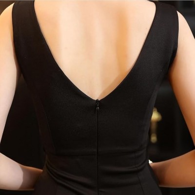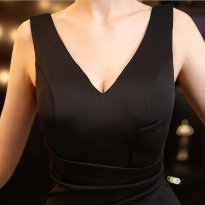 página de título > Quần áo > hterwqa quần áo plisetate quần áo plissettate màu đen satin cổ chữ V cổ cao