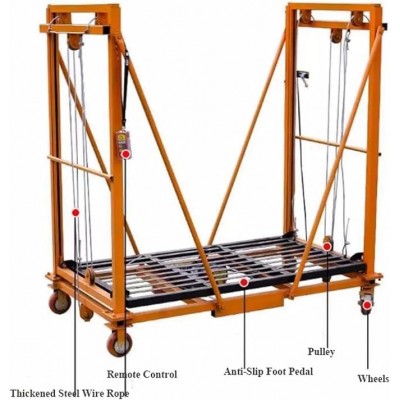 • Carico massimo di 500 kg: con una capacità fino a 500 kg, sarai in grado di gestire le attività aeree con facilità. La piattaforma può essere sollevata a 2 m a 5 m, si prega di scegliere l'altezza appropriata di cui hai bisogno. Ci sono 4 ruote bloccabili per una facile mobilità.