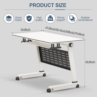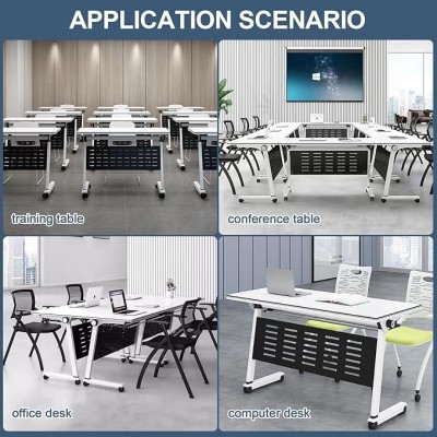 Có thể gập lại và di động: Bàn họp có thể gập lại được thiết kế thuận tiện và tiết kiệm không gian. Nó có thể dễ dàng gấp lại và cất giữ khi không sử dụng, rất lý tưởng cho các phòng hội nghị và phòng đào tạo có không gian hạn chế, bánh xe xoay 360°, có thiết bị khóa, dễ dàng di chuyển và khóa